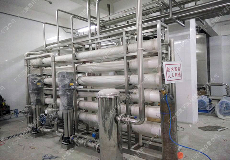 The water source is groundwater. Utilized the process of quartz sand filtration, activated carbon filtration and RO.. The treatment capacity is 2400+600T/D.The system was put into operation in Feb 2016. The effluent conductivity is ≤10us/cm2, that fully meets the pure water quality