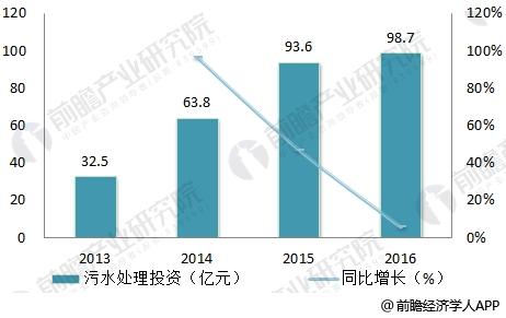 2013年以來,我國對于農村污水處理的投資在不斷增加。2016年,我國農村污水處理投資達到98.7億元,同比增長5.4%。