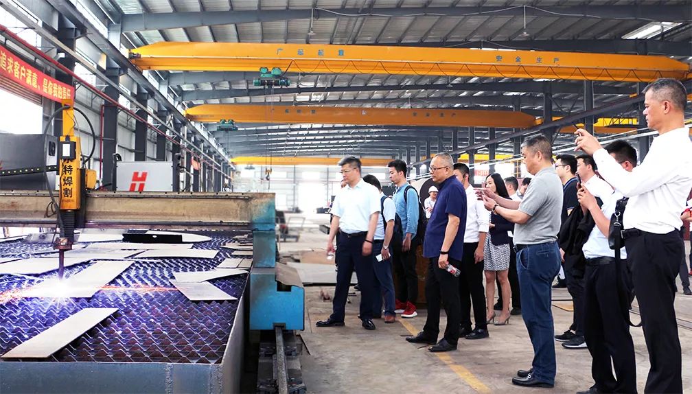 ▲參觀鵬凱第二工廠設(shè)備制造車間