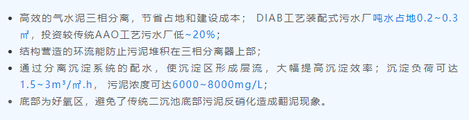 鵬凱圓—裝配式污水廠DIAB高效氣升環(huán)流式脫氮生物反應(yīng)器(Efficient Denitrogenation Process Integrated Airlift Loop Bioreactor 簡(jiǎn)稱(chēng)DIAB工藝 )主體設(shè)備呈多級(jí)環(huán)狀,通過(guò)控制內(nèi)部回流和曝氣量實(shí)現(xiàn)好氧反硝化;內(nèi)圈集成好氧段與沉淀池,通過(guò)三相分離器實(shí)現(xiàn)水、氣、污泥有效分離,并將分離后的氣體收集,形成大流量的氣提,實(shí)現(xiàn)泥水混合液在系統(tǒng)內(nèi)的無(wú)動(dòng)力回流。可通過(guò)生化反應(yīng)高效去除水體中COD、NH3-N、TP、TN、SS等污染物,使出水達(dá)標(biāo)排放。主要附屬設(shè)施包括“污泥濃縮+壓泥系統(tǒng)”、“加藥系統(tǒng)” 、“電控系統(tǒng)” 和“供風(fēng)系統(tǒng)” 等,操作運(yùn)行簡(jiǎn)單可靠。