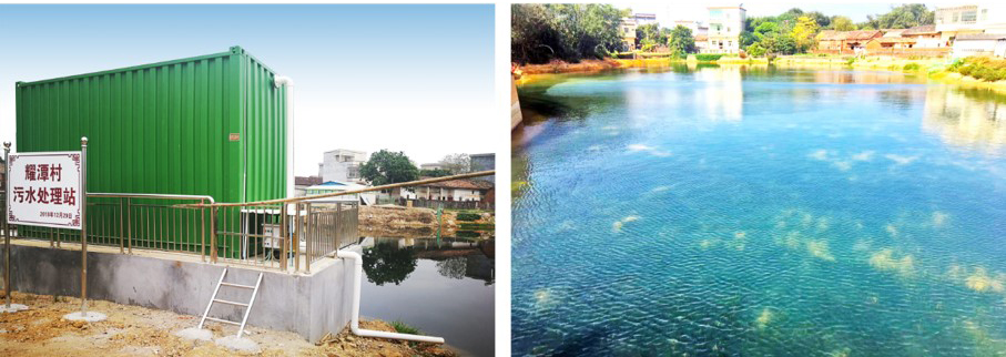 項(xiàng)目描述:處理規(guī)模30t/d,采用污水管網(wǎng)收集 + 一體化設(shè)備處理 + 清水生態(tài)塘深度處理(6000m2),生活污水經(jīng)處理后達(dá)到地表III類水(GB3838-2002)標(biāo)準(zhǔn),工程實(shí)施后生態(tài)塘水體清澈見底,水體無(wú)異味,環(huán)境優(yōu)美,大大提升人居環(huán)境。