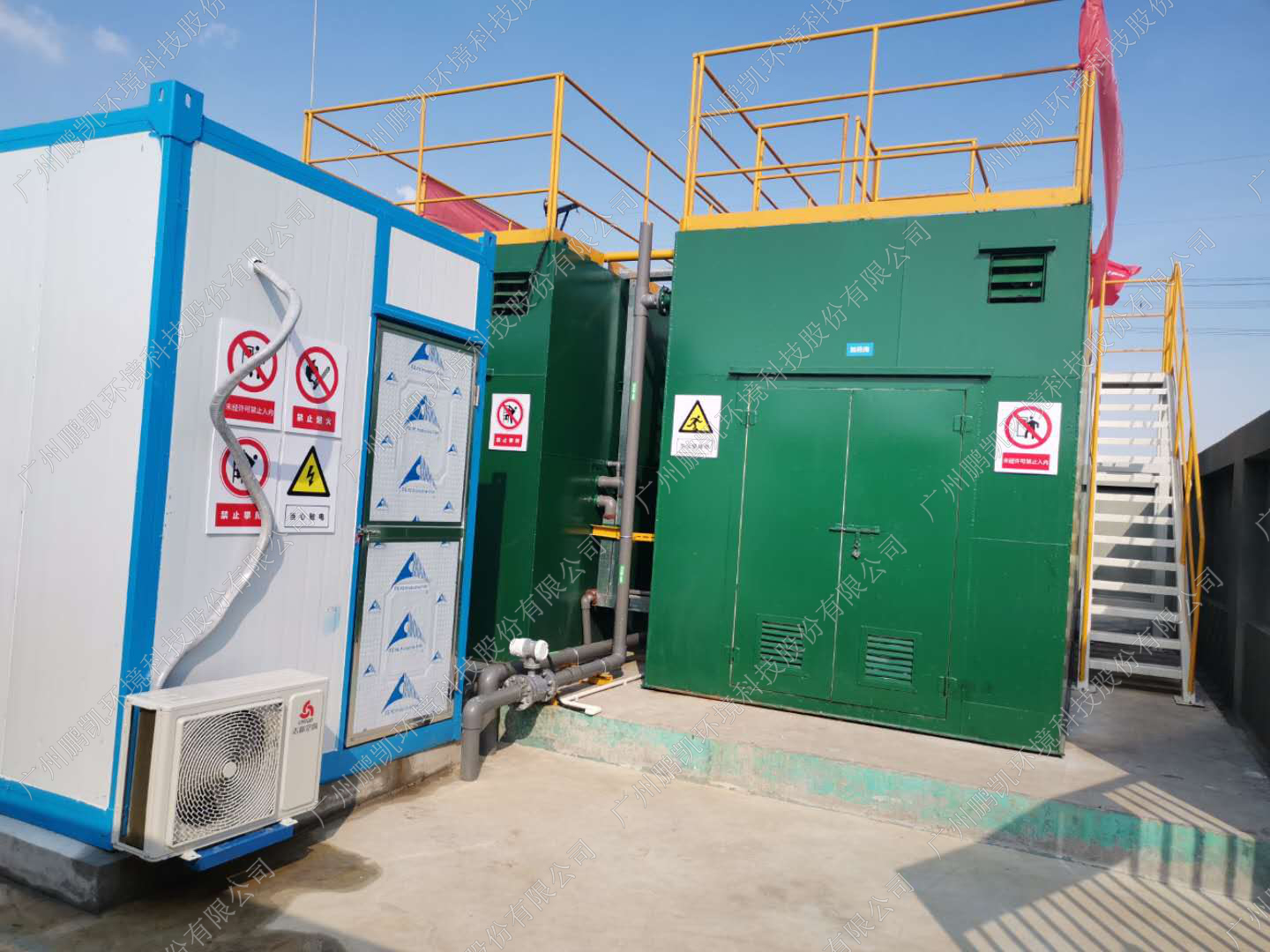 【工程概況】高沙村位于南沙區(qū)大崗鎮(zhèn)北部,自北向南,常住人口5230人,約1300戶。污水管收集后進(jìn)入分散式污水處理站,總設(shè)計規(guī)模為750噸/天。此站點(diǎn)為高沙村其中一個站點(diǎn)——4#站點(diǎn)。該高沙4#分散式農(nóng)村污水處理站點(diǎn)新建裝配式一體化提升泵站1座,裝配式一體化污水處理設(shè)施1座,處理規(guī)模為200噸/天。項目采用MBR處理工藝,出水水質(zhì)達(dá)到《城鎮(zhèn)污水處理廠排放標(biāo)準(zhǔn)》(GB18918-2002)一級B標(biāo)準(zhǔn)。