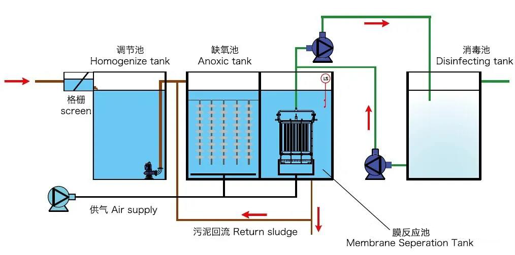 MBR工藝,是活性污泥法和膜分離技術(shù)組合的新型工藝,最大特點(diǎn)就是,處理效率上升一個(gè)層次,處理后的水質(zhì)標(biāo)準(zhǔn)高。