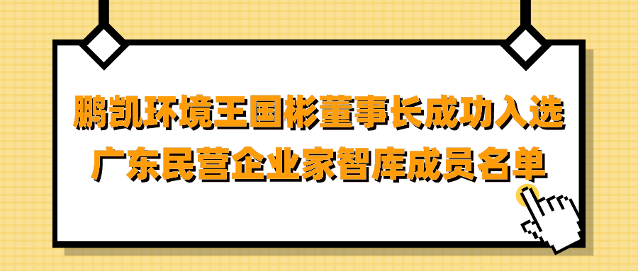 此次鵬凱環(huán)境王國彬董事長成功入選廣東民營企業(yè)家智庫成員名單,是對鵬凱環(huán)境快速穩(wěn)定發(fā)展的高度認(rèn)可,肯定了公司在環(huán)保領(lǐng)域所取得的成績,彰顯了公司強(qiáng)大的發(fā)展?jié)摿εc行業(yè)影響力。