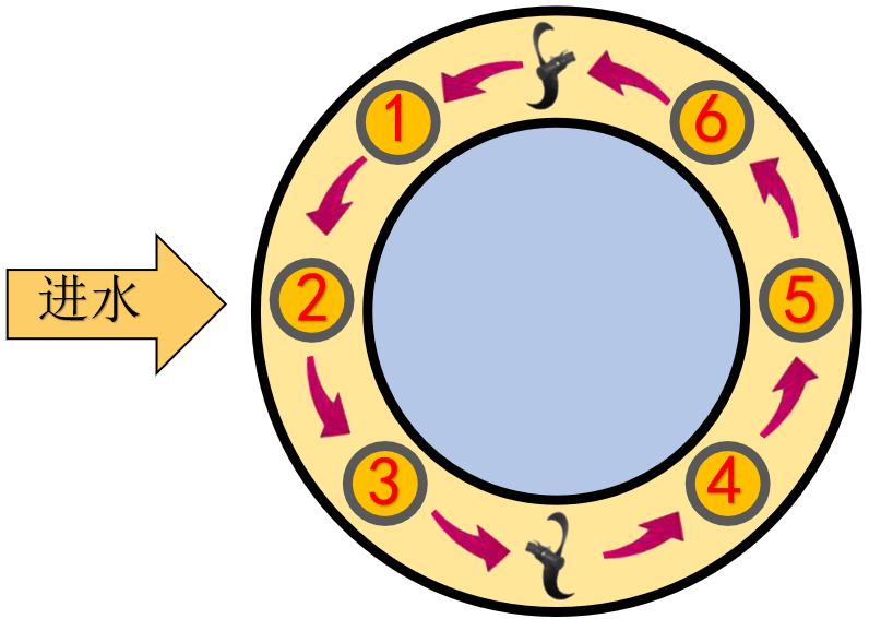 鵬凱圓類似一個環(huán)形圓。外圈類似一個氧化溝,里面設置了幾組精準曝氣段,根據(jù)曝氣段的不同,可以單獨控制不同的曝氣位置。王國彬指出,鵬凱圓是一個柔性控制的過程,當來水水質發(fā)生變化的時候,可增大硝化區(qū)域,適當增大曝氣區(qū)域,通過精準曝氣來柔性控制應對來水水質的變化。