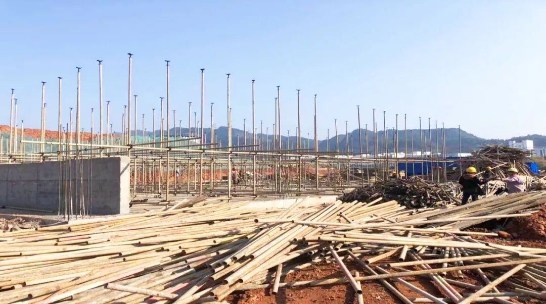 余慶項目施工現場一片熱鬧景象,施工機械隆隆作響,工人們正搶抓施工黃金季,進行基礎建設及主體鋼結構施工等作業(yè)。