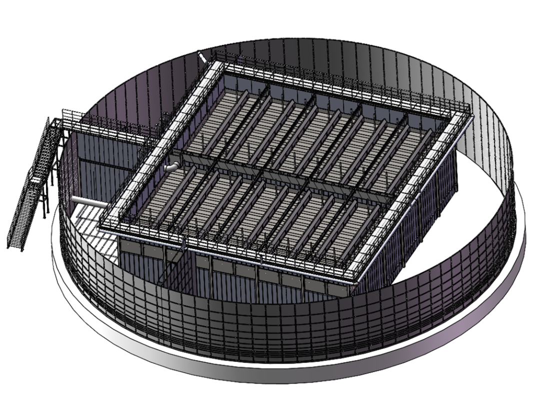 王國(guó)彬分析,無(wú)論是圓還是方,都是結(jié)構(gòu)上很樸實(shí)的想法,池子首先是容器,只要能容下足夠的微生物就達(dá)到目的了。鵬凱環(huán)境最早做同心圓也是考慮到內(nèi)圈的流態(tài)問(wèn)題,在仿真流態(tài)試驗(yàn)下,鵬凱環(huán)境發(fā)現(xiàn)圓形的死角最少,如果是方形,就需要額外的動(dòng)力來(lái)解決死角問(wèn)題,而額外的動(dòng)力造成的能耗損失不小,此外,圓形也有利于實(shí)現(xiàn)產(chǎn)品的標(biāo)準(zhǔn)化。