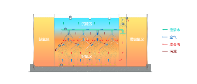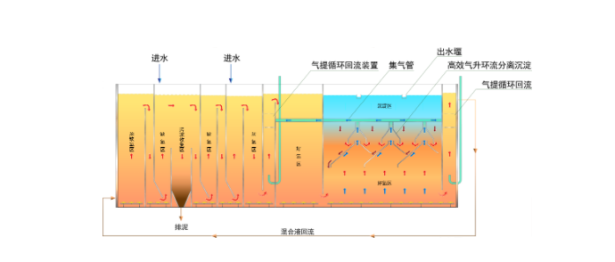 1. 通過水力作用讓厭、缺氧段的生化污泥處于流化懸浮狀態(tài),提高泥水的充分接觸效率;